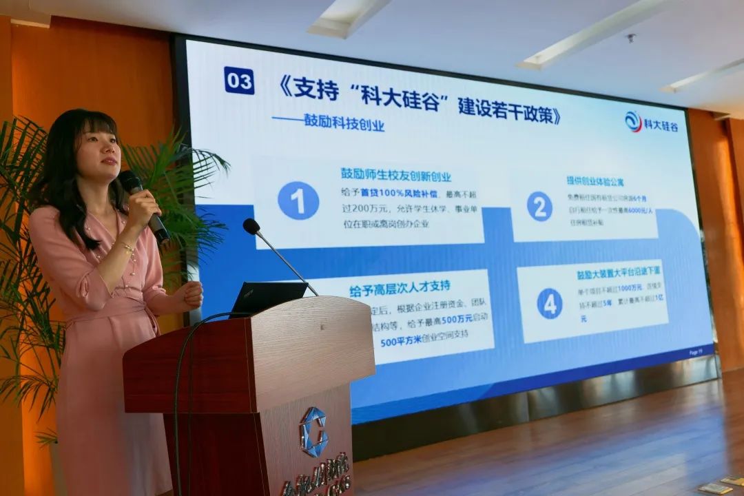 活動伊始,科大硅谷服務平臺公司產業服務中心總經理陳碧珊圍繞科大硅谷“政策體系”和“服務體系”兩大業務板塊,介紹了科大硅谷的相關政策以及面向企業提供全鏈條的科創服務、場景對接服務、科創金融服務和全球合伙人專業服務等體系化服務模式。