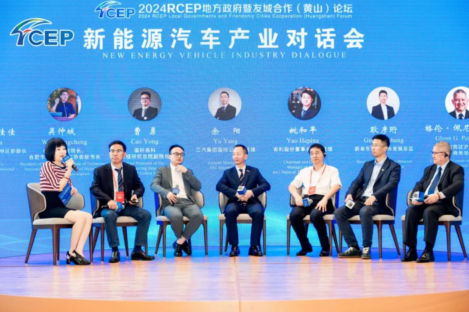 對話會現場,合肥創新院院長、合肥市新能源汽車協會秘書長吳仲城,國軒高科工程研究總院副院長曹勇,江汽集團國際公司總經理余陽,安利股份董事長、總經理姚和平,蔚來東南亞業務發展總監耿彥珩,菲律賓駐滬總領館商務領事格倫·佩尼亞蘭達共同圍繞東盟新能源汽車產業形態及發展前景進行了主題對話,并對目前新能源汽車在RCEP區域的機遇和挑戰進行了充分交流。